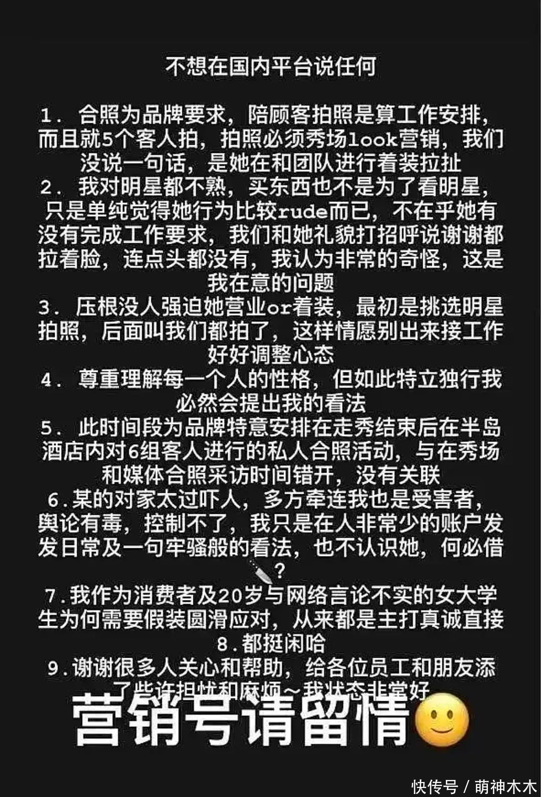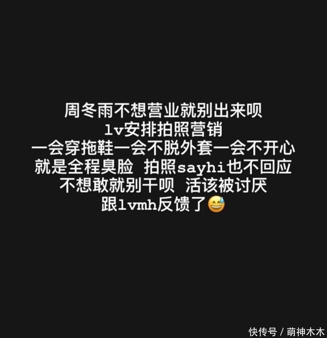 首先吐槽周冬雨“全程臭脸,打呼唤也不回话,该死被脑怒”的LV顶级贵客博主再次发文,先是讲了了“合照为品牌条款,陪顾主拍照算是责任安排”,之后又认知“此时刻段为品牌挑升安排的私东说念主合照依次,与秀场和媒体合照采访时刻错开”。